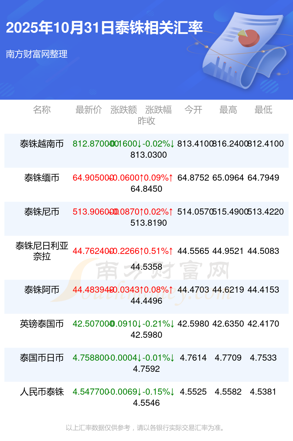 2025年10月31日泰銖相關(guān)匯率查詢