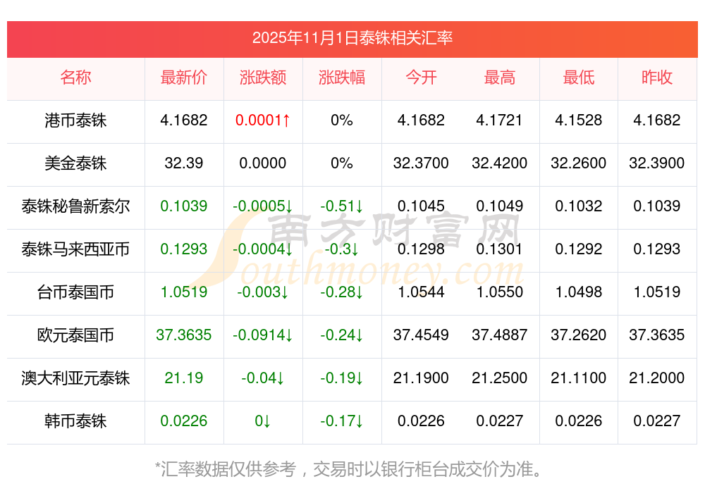 根據(jù)2025年11月1日匯率計(jì)算,THB兌換NOK匯率最新價(jià)0.312500:今開(kāi)價(jià)0.3125,昨收價(jià)0.3126,最高價(jià)0.3134,最低價(jià)0.3099。