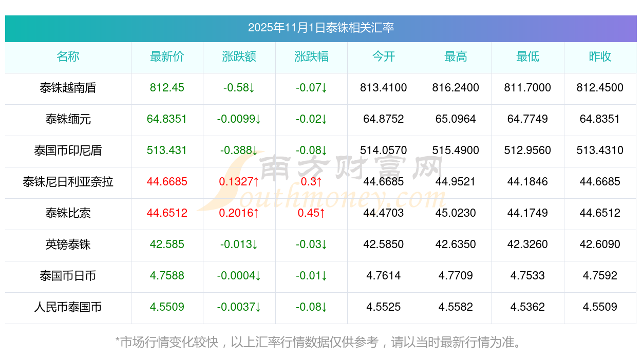 根據(jù)今天2025年11月1日匯率計(jì)算,THB兌換SEK匯率最新價(jià)0.293100,今開(kāi)價(jià)0.2919,昨收價(jià)0.2931,最高價(jià)0.2940,最低價(jià)0.2914。
