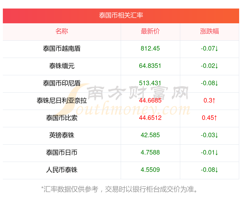 2025年11月1日泰國幣相關(guān)匯率查詢