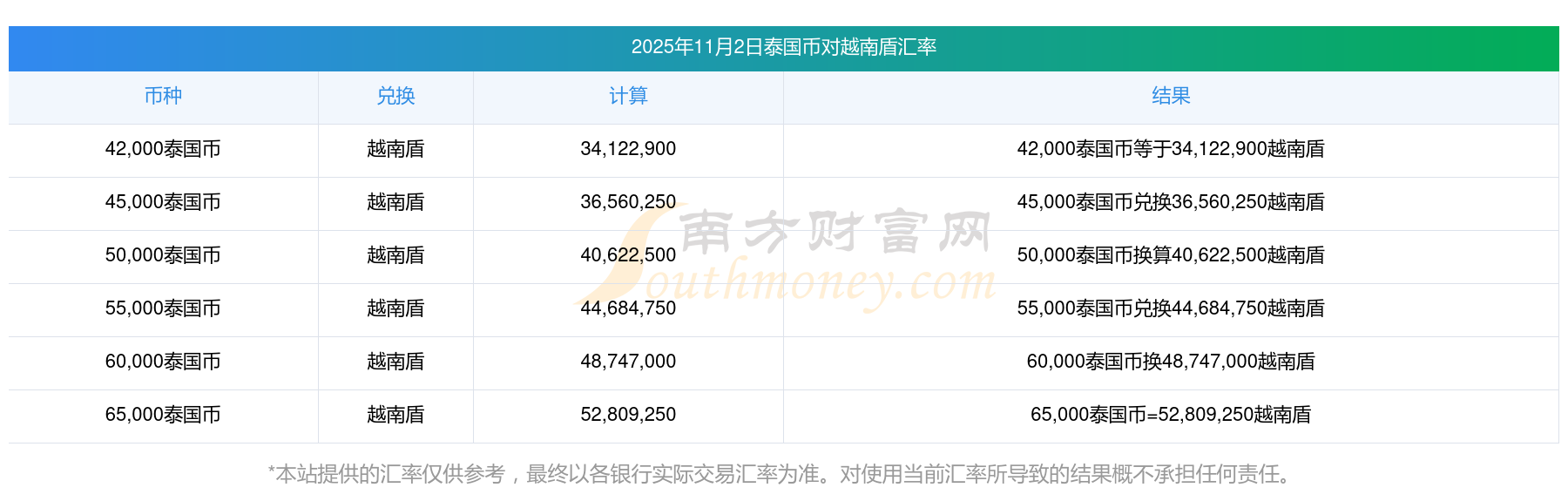 南方財富網(wǎng)為您提供泰國幣對越南盾匯率最新價格詳情。