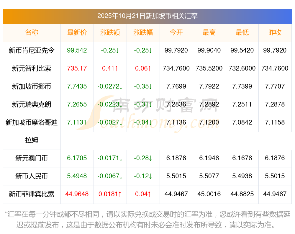2025年10月21日新加坡幣相關(guān)匯率查詢(xún)