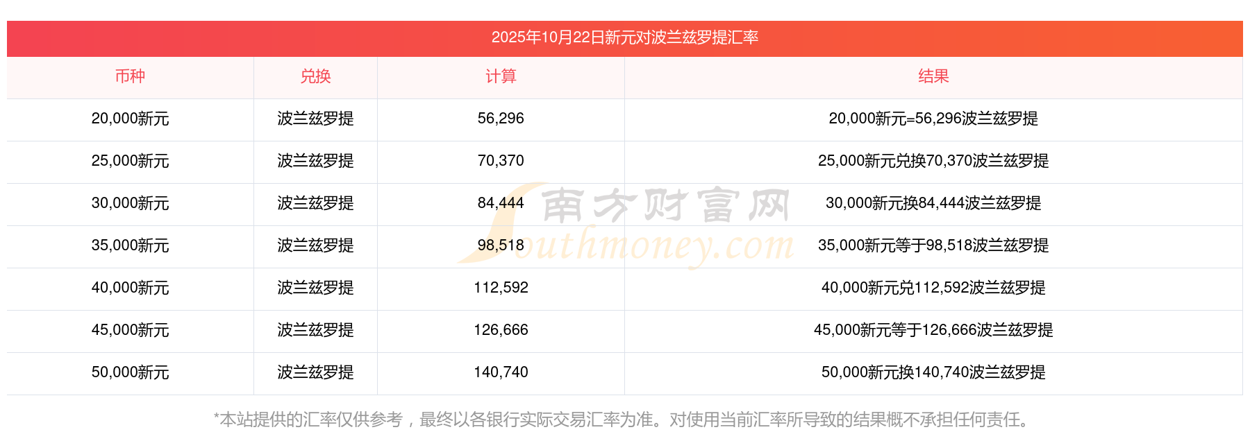 最新2025年10月22日24新元兌波蘭茲羅提匯價(jià)是多少?