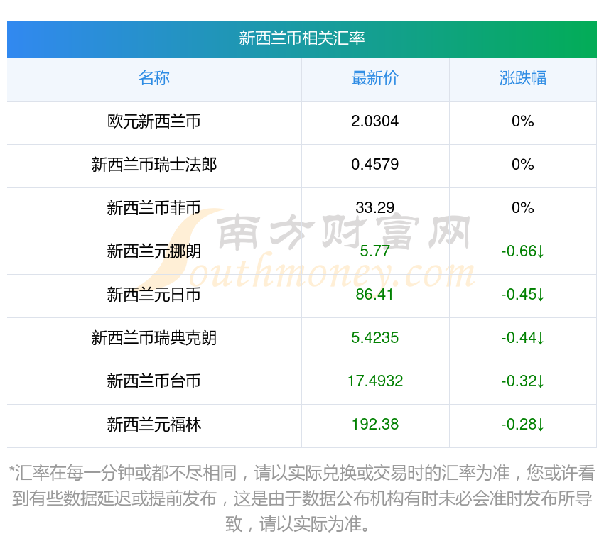 南方財富網(wǎng)為您提供新西蘭幣對南特匯率最新價格詳情。