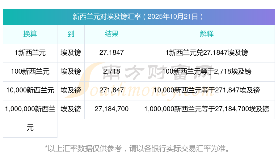 今天新西蘭元匯率買入價 120新西蘭元兌埃及鎊匯率是多少?(2025-10-21)