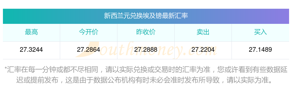 南方財(cái)富網(wǎng)為您提供新西蘭元對埃及鎊匯率最新價格詳情。