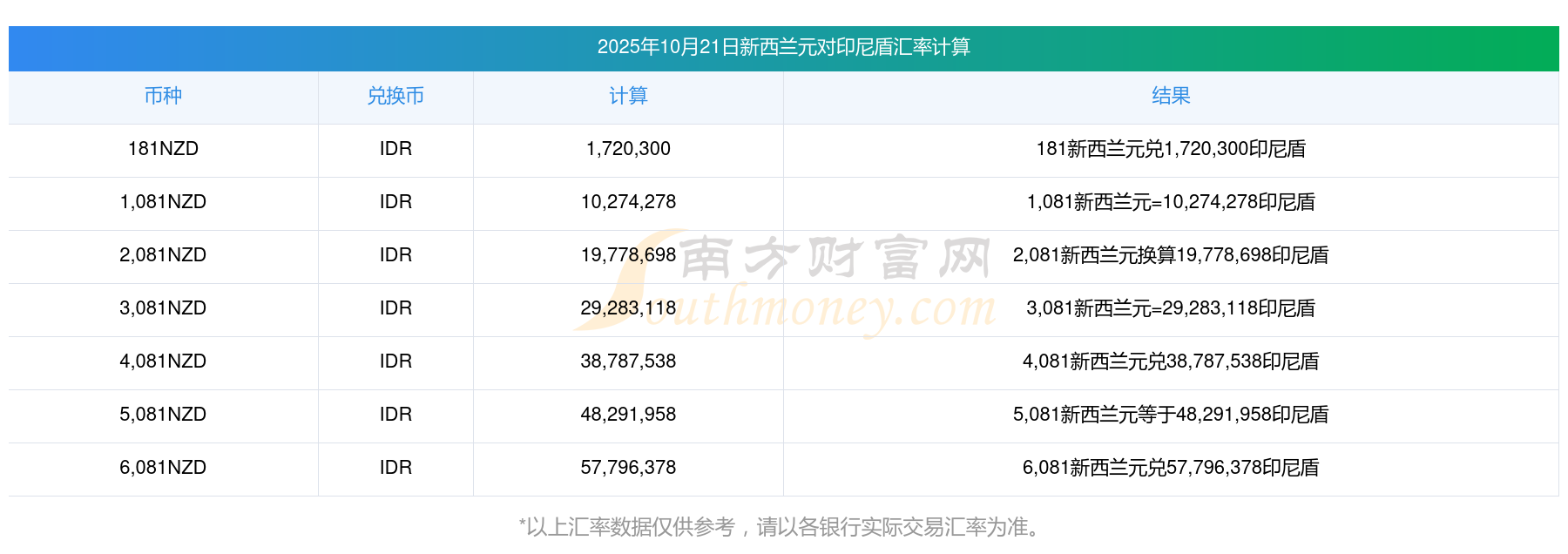 匯率實(shí)時(shí)更新!58新西蘭元兌換印尼盾匯率表(2025年10月21日)