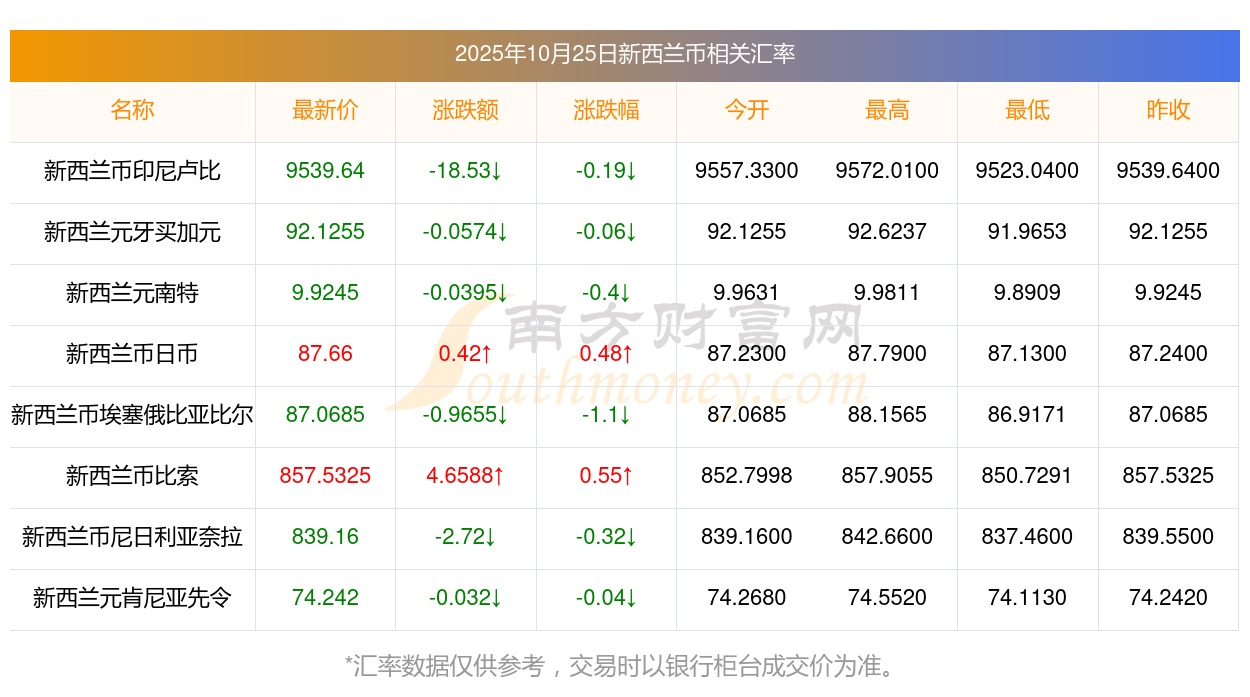 2025年10月25日新西蘭幣對蘇磅匯率行情