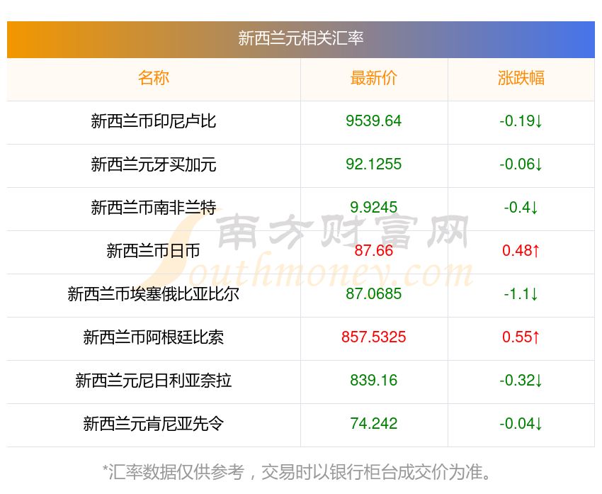 2025年10月25日新西蘭元相關(guān)匯率查詢