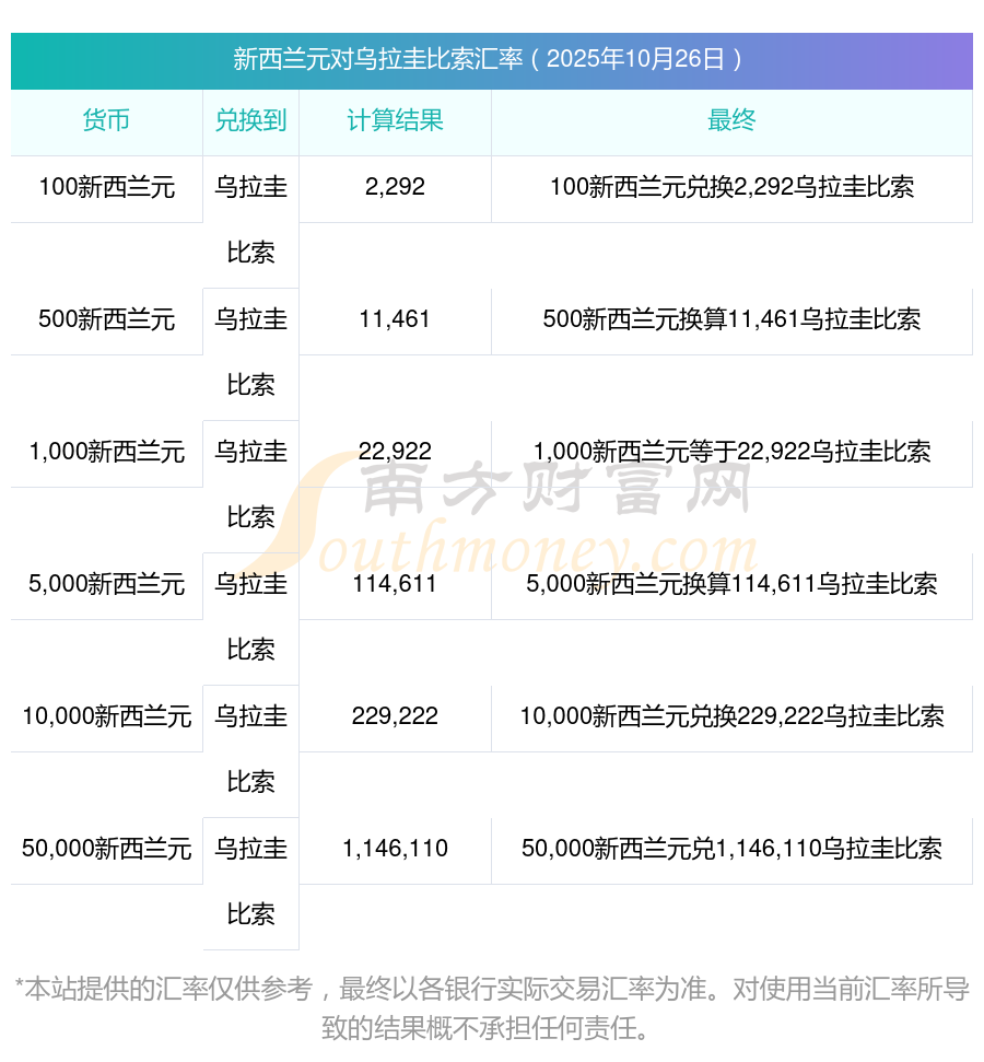 南方財富網(wǎng)為您提供新西蘭元對烏拉圭比索匯率最新價格詳情。