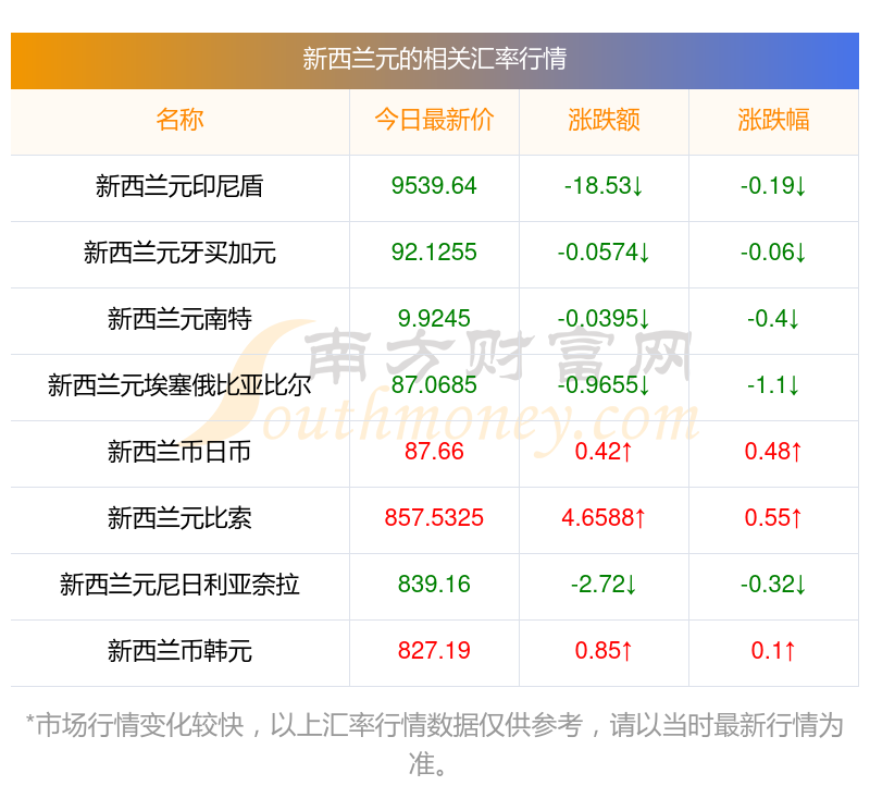 2025年10月26日新西蘭元相關(guān)匯率查詢