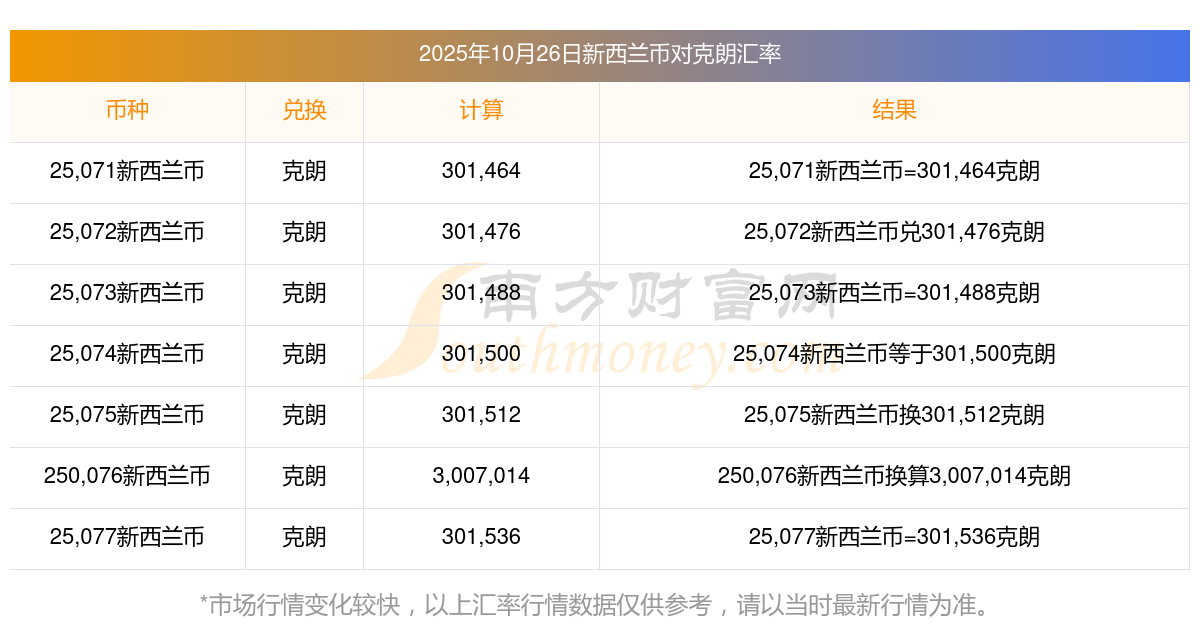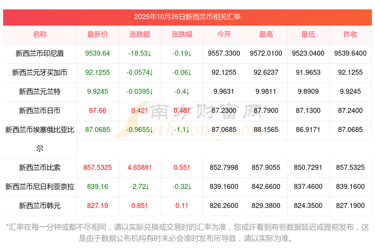 新西蘭幣外匯價(jià)格查詢10-26 今日5新西蘭幣能兌多少克朗?