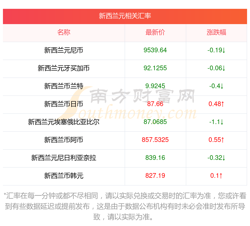 南方財(cái)富網(wǎng)為您提供新西蘭元對臺幣匯率最新價格詳情。