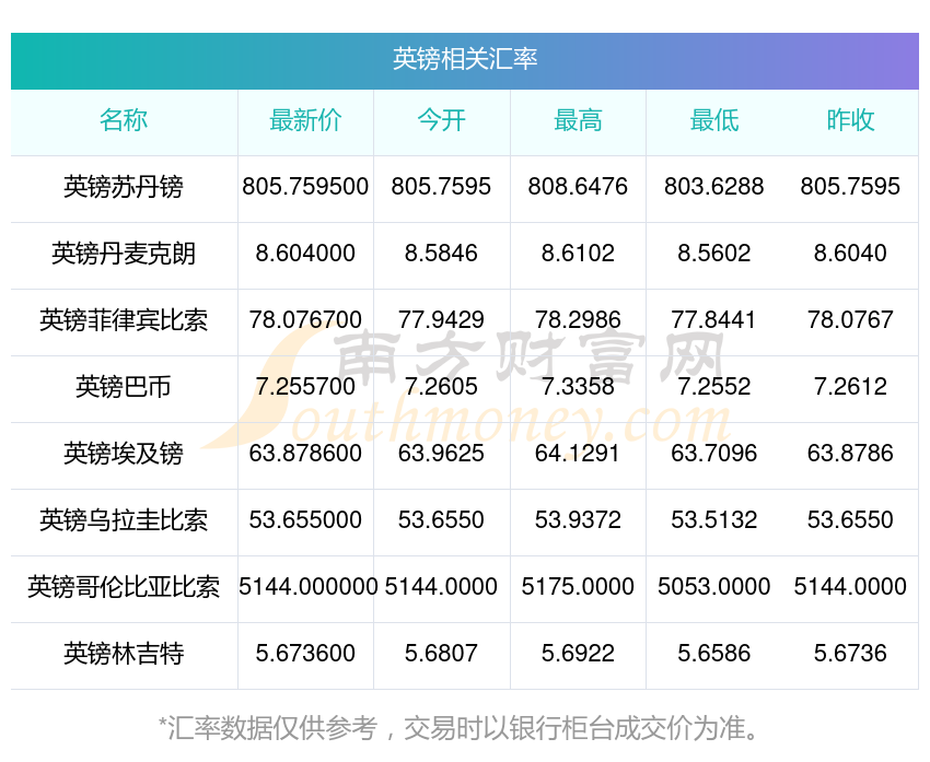 南方財(cái)富網(wǎng)為您提供英鎊對(duì)蘭幣匯率最新價(jià)格詳情。