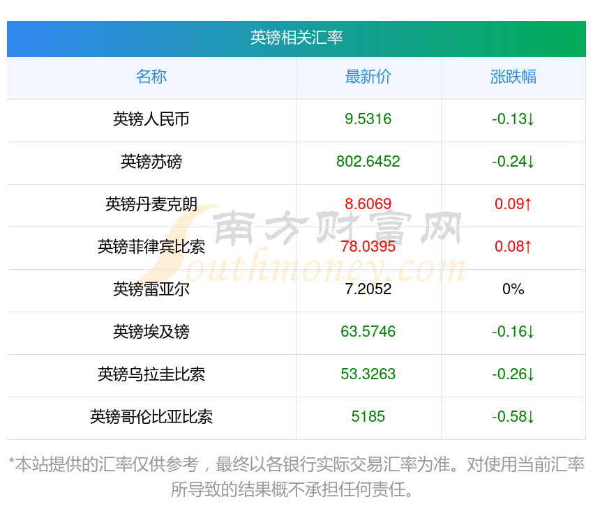 2025年10月21日英鎊相關(guān)匯率查詢