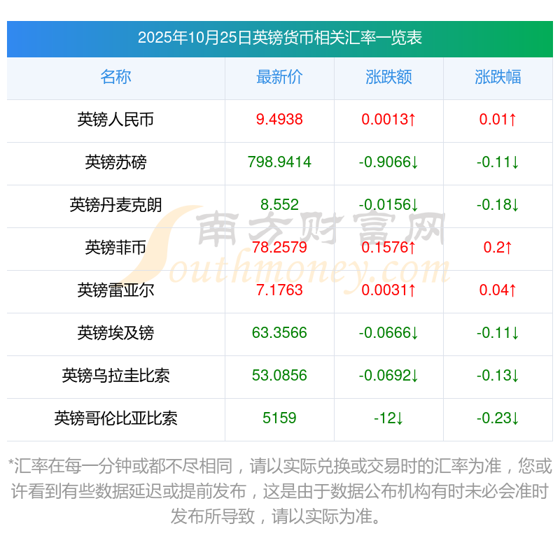 2025年10月25日英鎊相關(guān)匯率查詢