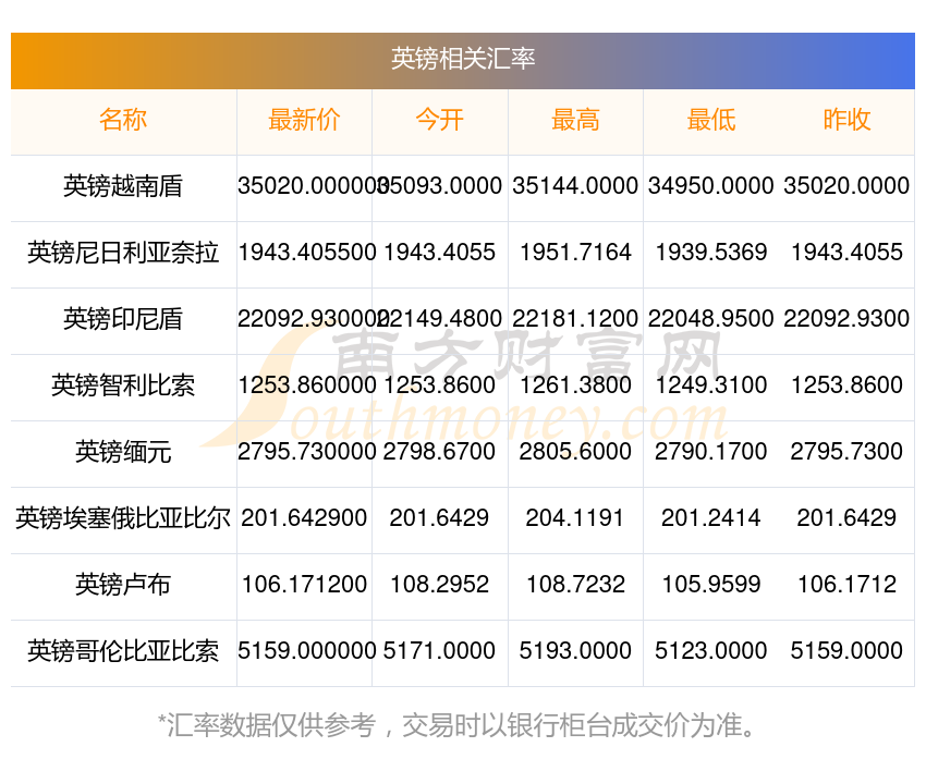 南方財富網(wǎng)為您提供英鎊對韓幣匯率最新價格詳情。