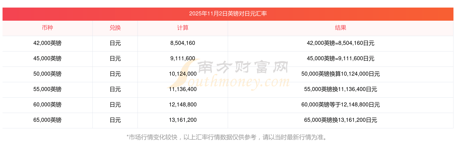 英鎊匯率:今日英鎊對(duì)日元匯率是多少?2025/11/2