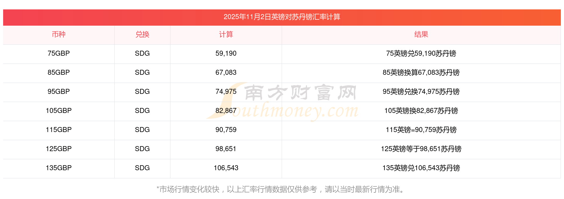 南方財富網(wǎng)為您提供英鎊對蘇丹鎊匯率最新價格詳情。