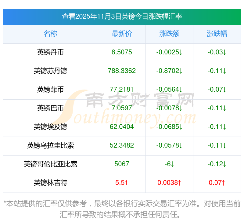 2025年11月3日英鎊兌換臺幣最新匯率:40.463500,今開:40.4634,昨收:40.4864,最高:40.4700,最低:40.4065。