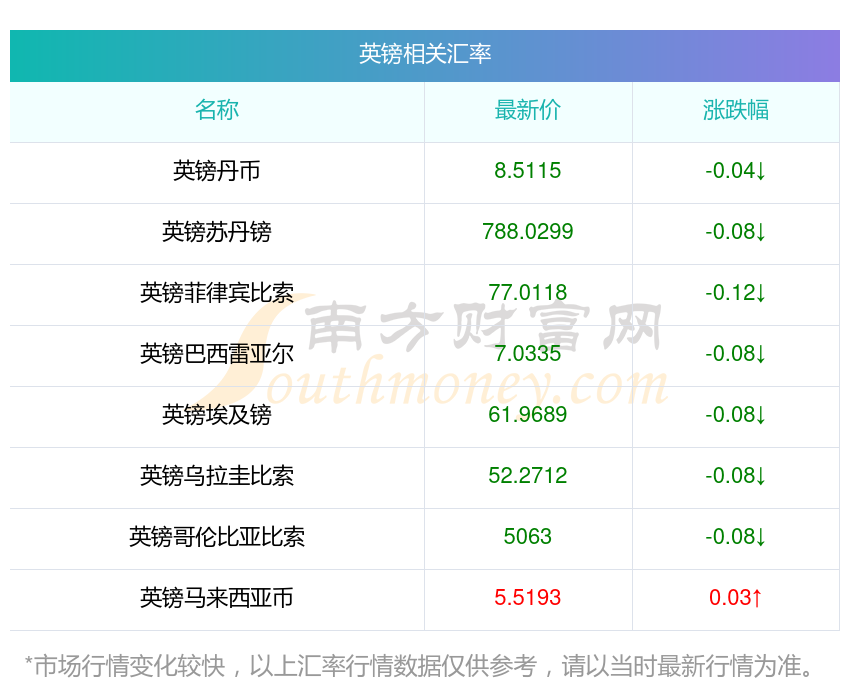 2025年11月4日英鎊相關(guān)匯率查詢