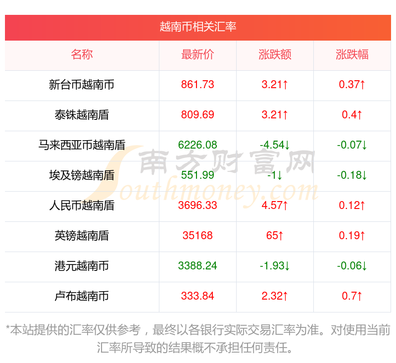 南方財富網(wǎng)為您提供越南幣對埃鎊匯率最新價格詳情。