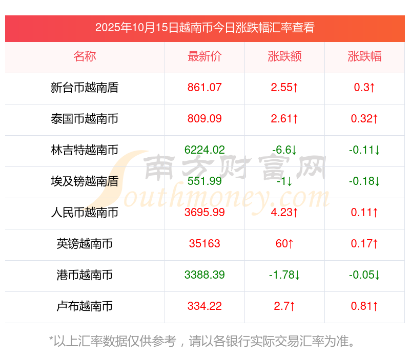 今日外匯牌價(jià)_將越南幣與新臺(tái)幣匯率實(shí)時(shí)查詢 2025-10-15