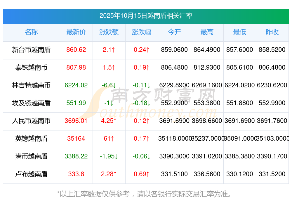 根據(jù)2025年10月15日匯率計算,越南盾兌換秘魯新索爾匯率最新價0.000130,今開價0.0001,昨收價0.0001,最高價0.0001,最低價0.0001。