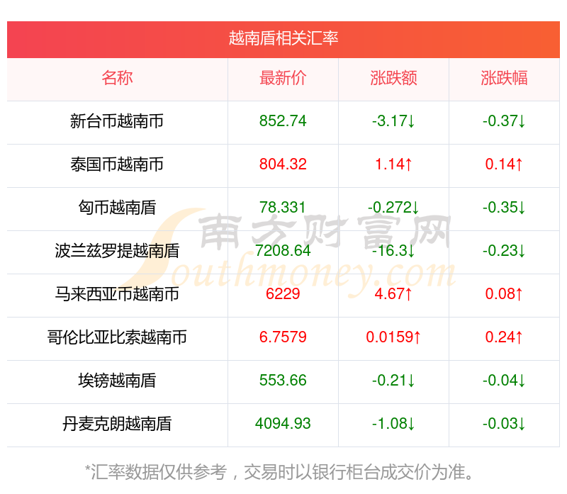 南方財富網(wǎng)為您提供越南盾對丹幣匯率最新價格詳情。