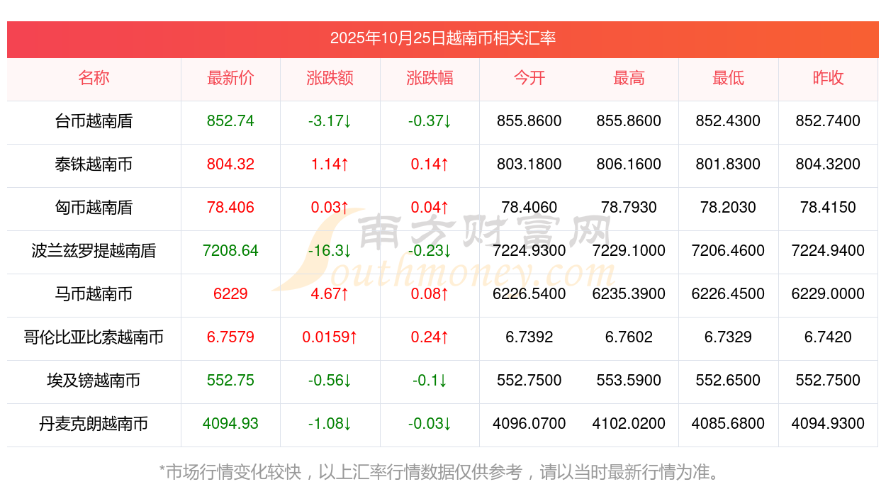2025年10月25日越南幣相關(guān)匯率查詢