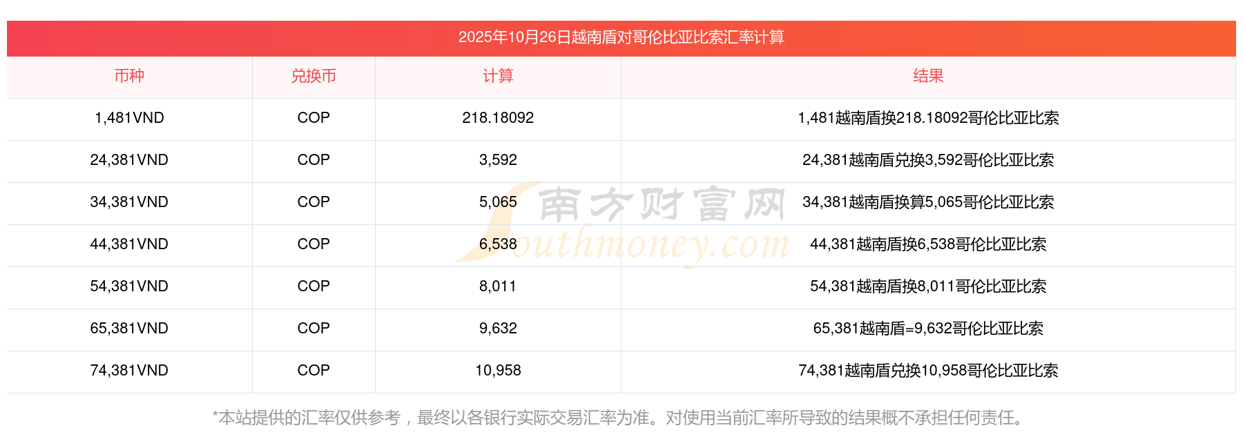 今天9越南盾兌換哥倫比亞比索匯率是多少 外匯如何查詢2025年10月26日