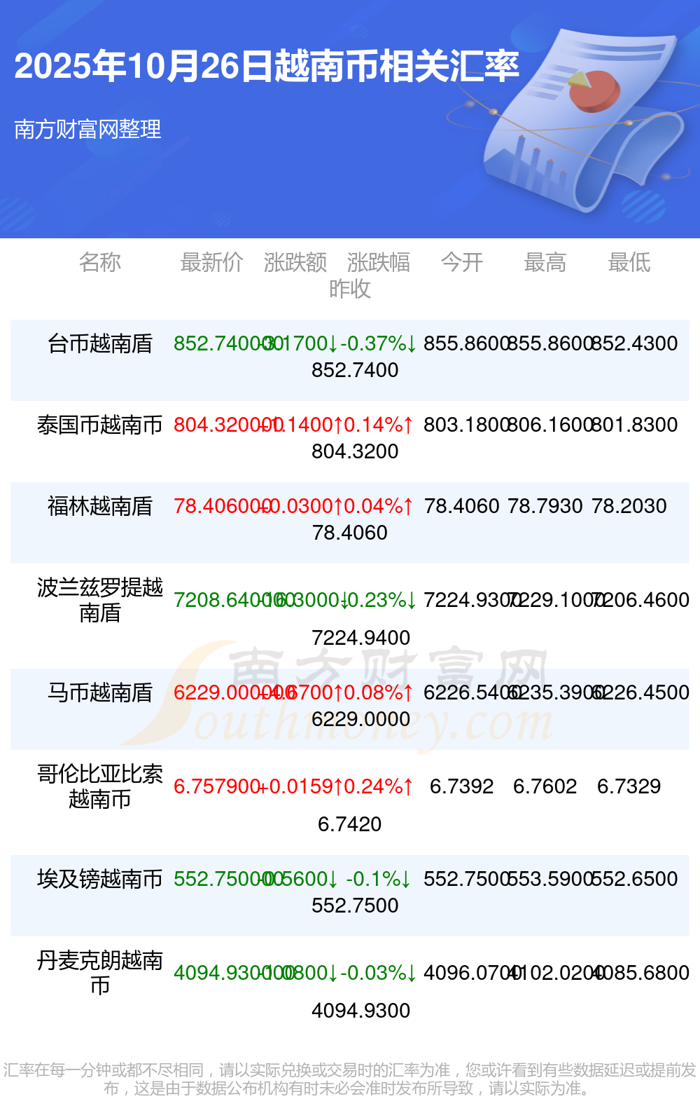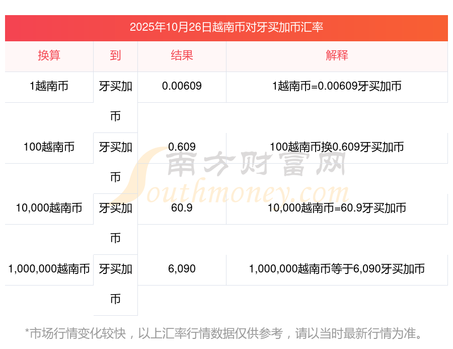 南方財富網(wǎng)為您提供越南幣對牙買加幣匯率最新價格詳情。