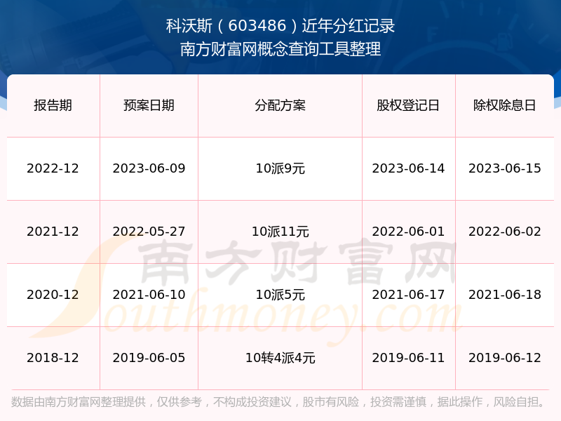 科沃斯歷年分紅派息情況如下表所示: