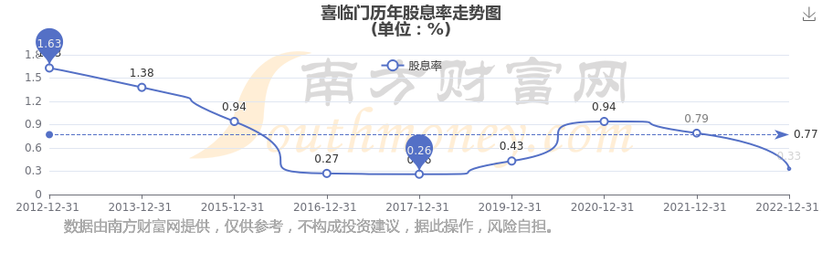 喜臨門歷年股息率走勢如下圖: