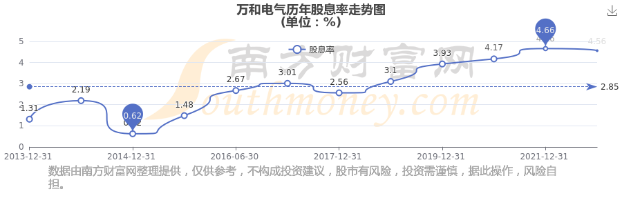 近年萬和電氣年度股息率走勢如下圖: