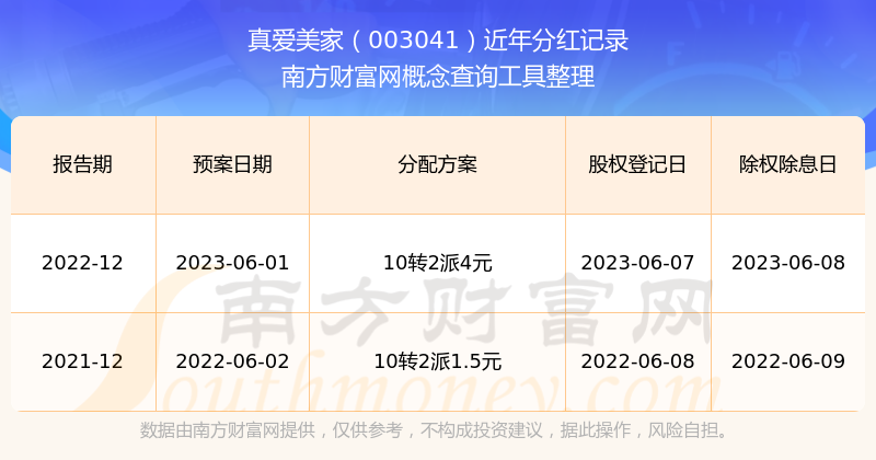 真愛美家最新一次公布的分紅方案:10轉(zhuǎn)2派4元。