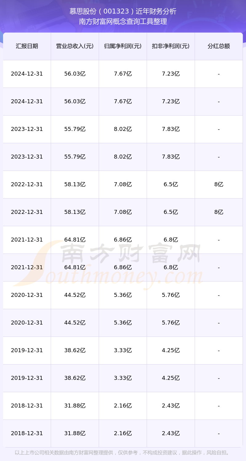慕思股份最新一次公布的分紅方案為10派10元。本次權(quán)益分派股權(quán)登記日為2023年5月25日,除權(quán)除息日為2023年5月26日,派息日為2023年5月26日。