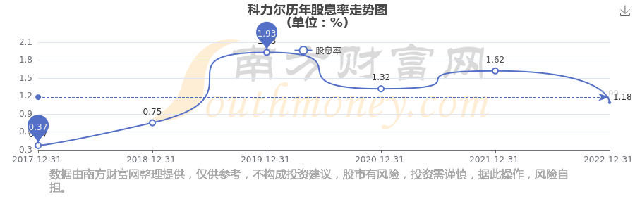 近年科力爾年度股息率走勢(shì)如下圖: