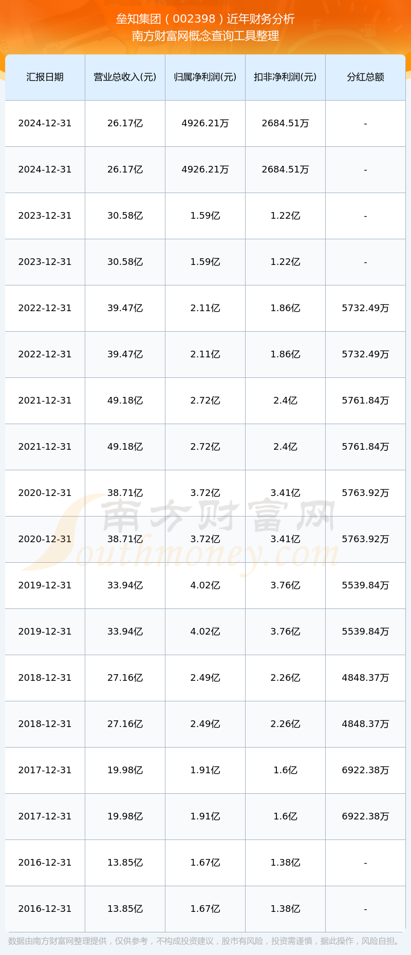 近年壘知集團(tuán)分紅派息情況如下表所示:
