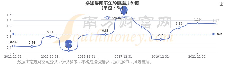 壘知集團(tuán)歷年股息率走勢(shì)如下圖: