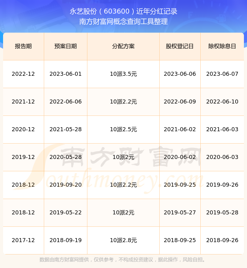 永藝股份最新一次公布的分紅方案:10派3.5元。