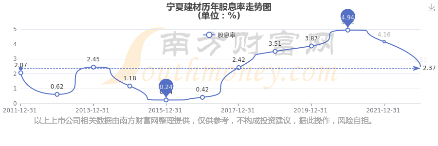 近年寧夏建材年度股息率走勢(shì)如下圖: