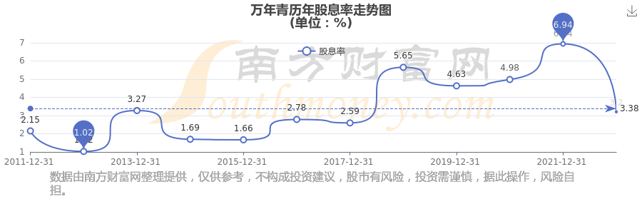 近年萬(wàn)年青年度股息率走勢(shì)如下圖: