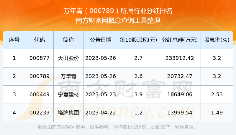 二、萬(wàn)年青000789行業(yè)分紅排名