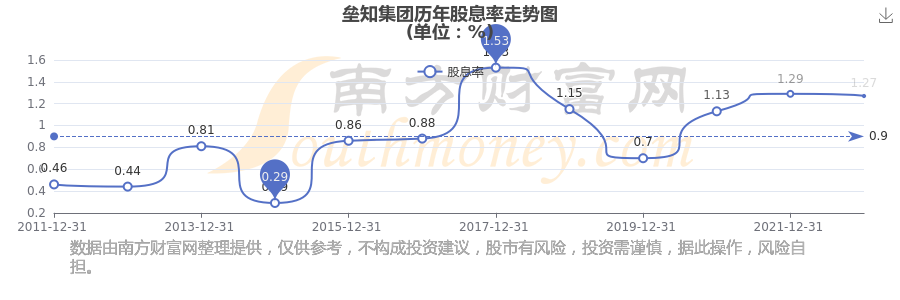 近年壘知集團(tuán)年度股息率走勢(shì)如下圖: