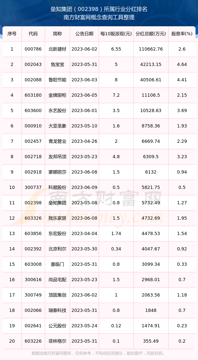 二、壘知集團(tuán)002398行業(yè)分紅排名