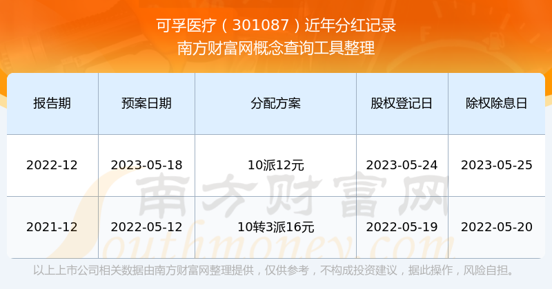 可孚醫(yī)療最新一次公布的分紅方案為10派12元。本次權(quán)益分派股權(quán)登記日為2023年5月24日,除權(quán)除息日為2023年5月25日,派息日為2023年5月25日。