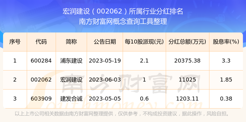 二、宏潤建設(shè)002062行業(yè)分紅排名