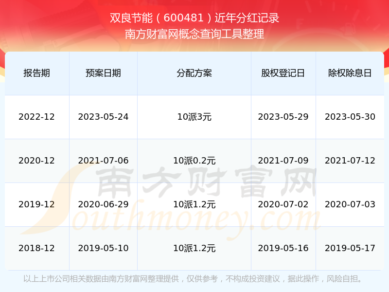 雙良節(jié)能最新一次公布的分紅方案:10派3元。
