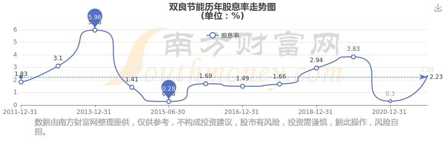 近年雙良節(jié)能年度股息率走勢如下圖: